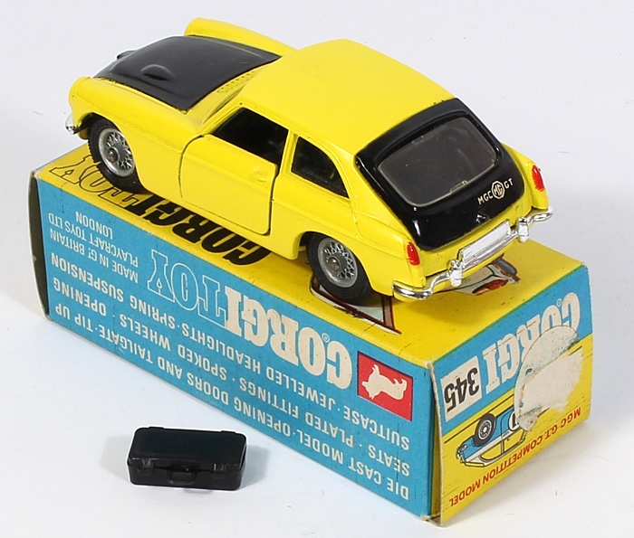Corgi 345 MGC GT. Near mint plus/boxed. Later box with correct details printed. With suitcase. From The Berlin Collection.
