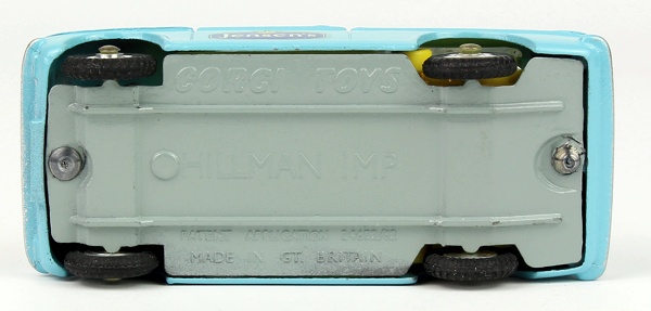 One of the rarest Corgi models – the Danish promotional version of the Hillman Imp finished in light blue. Authentic ’JENSEN’S’ labels on both sides, yellow interior, shaped spun wheels with notably intact suspension throughout.