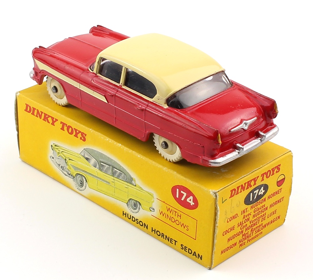 Dinky 174 Hudson Hornet Sedan. Very near mint/boxed. Bright red and cream issue. From The Cumbrian Collection.