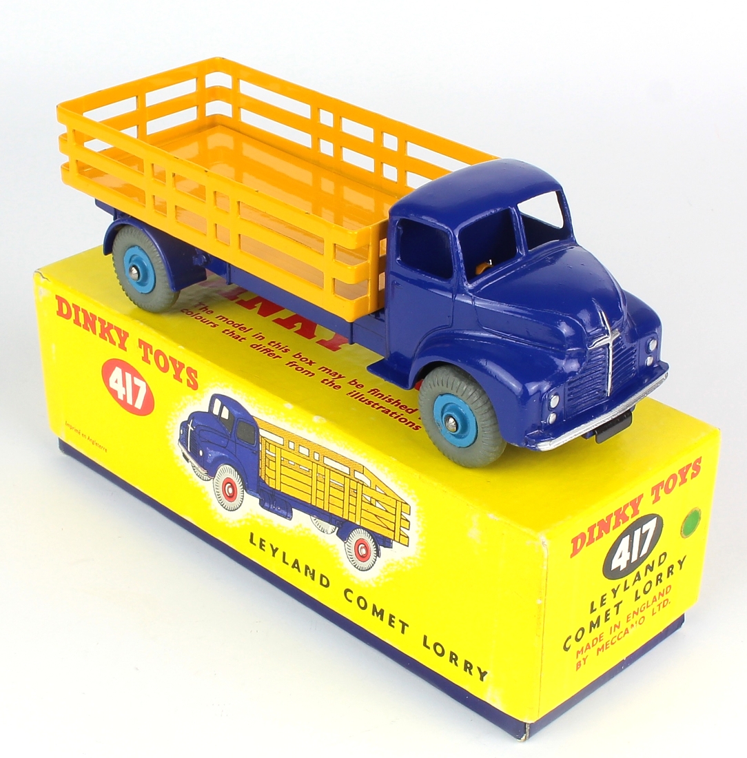 Dinky 417 Leyland Comet Lorry. Very near mint/boxed. Violet blue & deep yellow issue. Rare with LIGHT BLUE Supertoy wheels. From The Berlin Collection.
