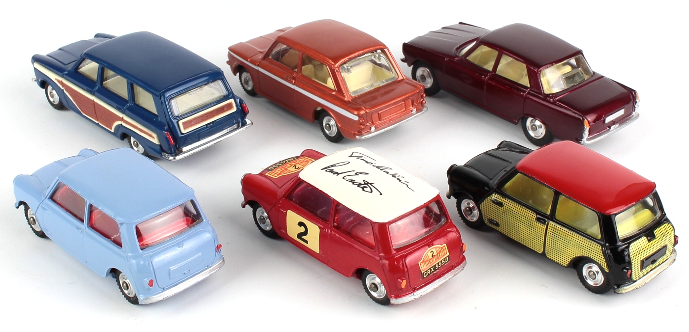 7) Corgi 321 Mini Cooper ‘S’ Monte Carlo 1966 in red and white with suspension on shaped spun wheels. Roof signatures of Timo Makkinen and Paul Easter, complete racing number ‘2’ on both doors, bright sump guard, jewelled lights. Notably complete transfers.Very, very near mint.