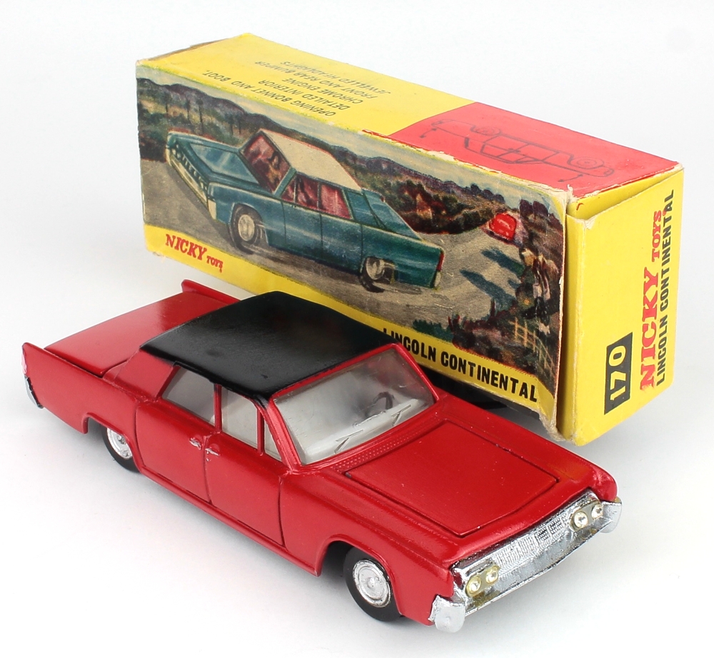 Nicky 170 Lincoln Continental. Bright non-metallic red with a black roof version. Very near mint/boxed. Scarce. From The Berlin Collection.