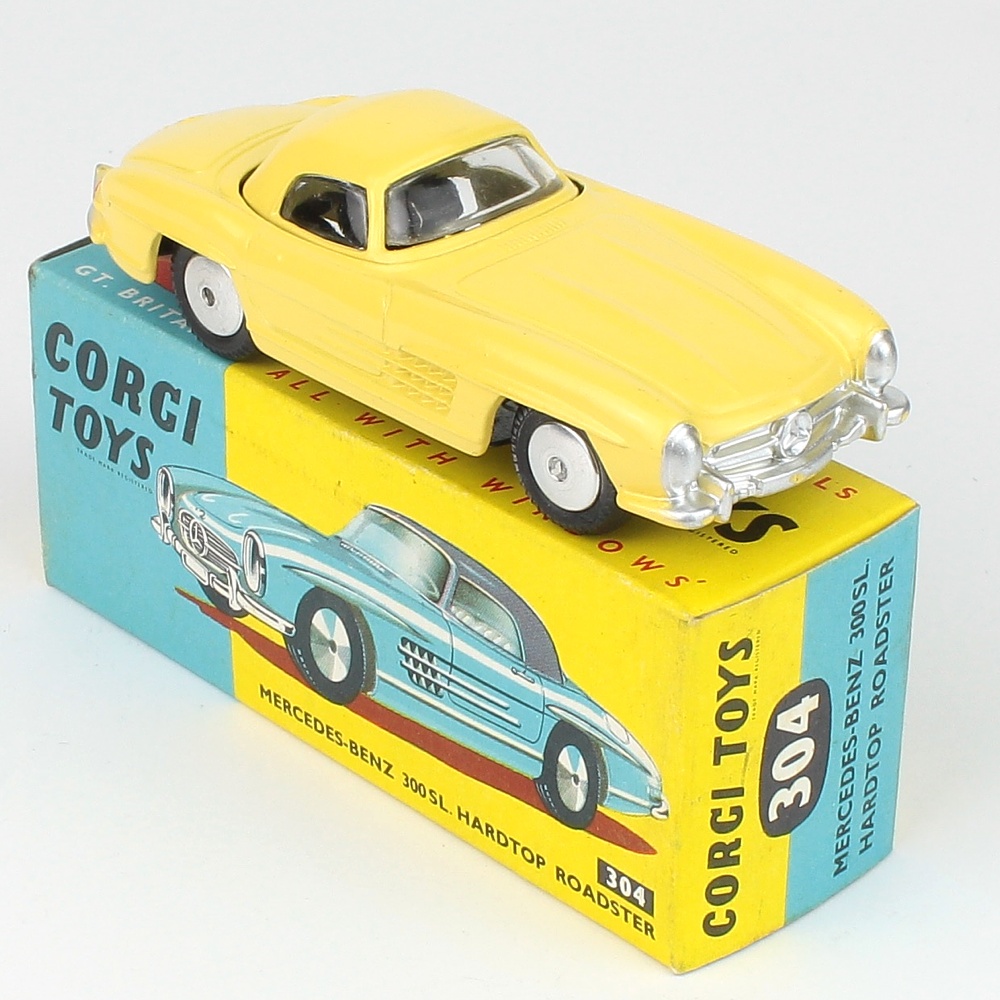 Corgi 304 Mercedes-Benz 300 SL Hardtop Roadster. Very, very near mint/boxed. Scarce all-yellow issue. From The Reference Collection.