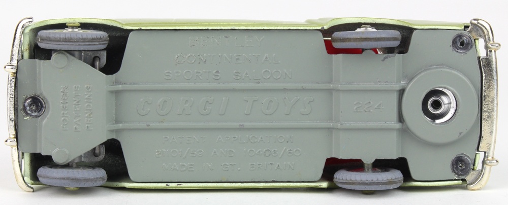Corgi 224 Bentley Continental Sports Saloon. Two-tone green issue. Very near mint/boxed. Version with light grey tyres. From The Berlin Collection.