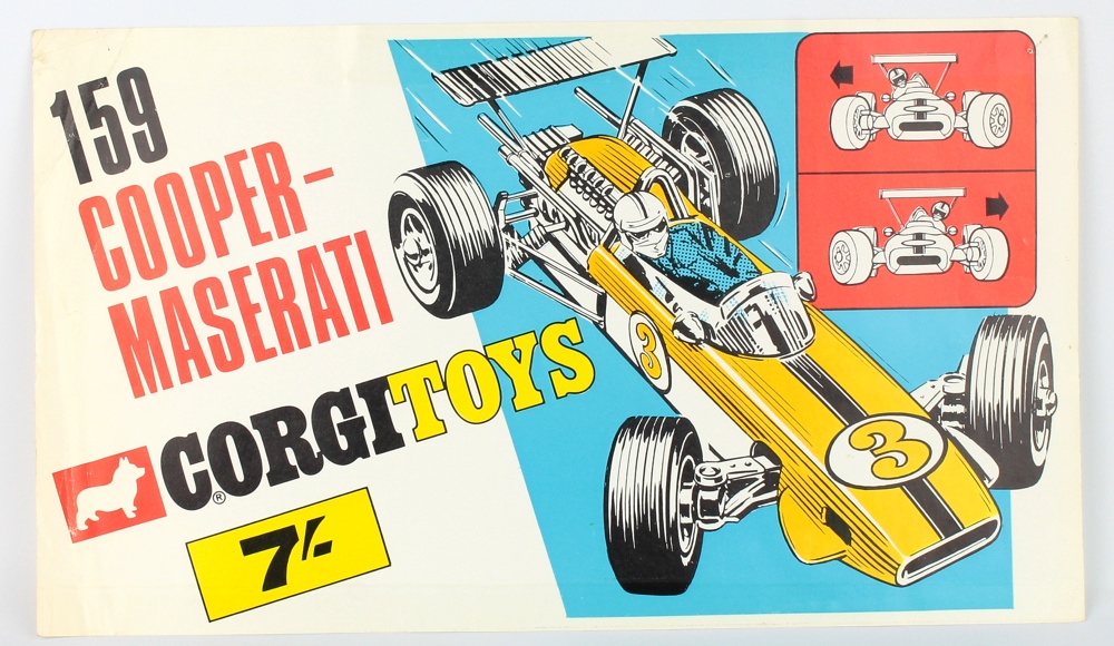 Original, promotional Corgi Window Poster for Corgi 159 Cooper-Maserati. Near mint plus. Rare point of sale item from The Old School Collection.