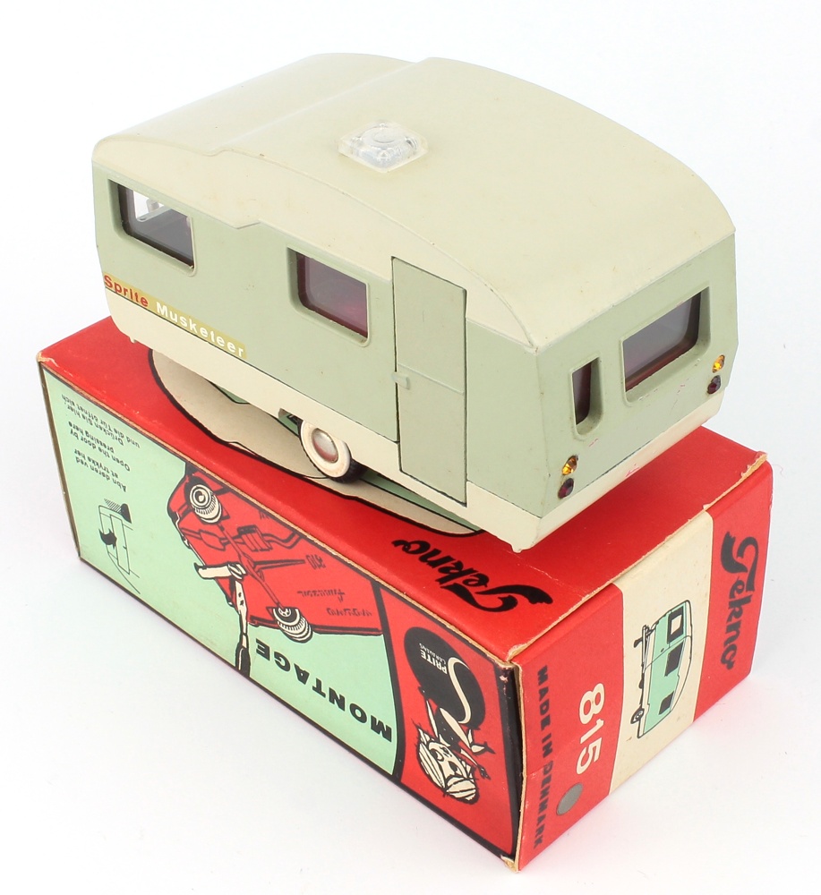 Tekno 815 Sprite 'Musketeer' Caravan. Fawn & powder blue version with towing attachment (in original clear printed packet). Near mint plus/boxed. From The Berlin Collection.