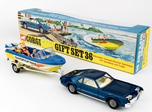 Corgi Gift Set 36 Oldsmobile Toronado, Speedboat & Trailer. Near mint plus/boxed. From The Berlin Collection.