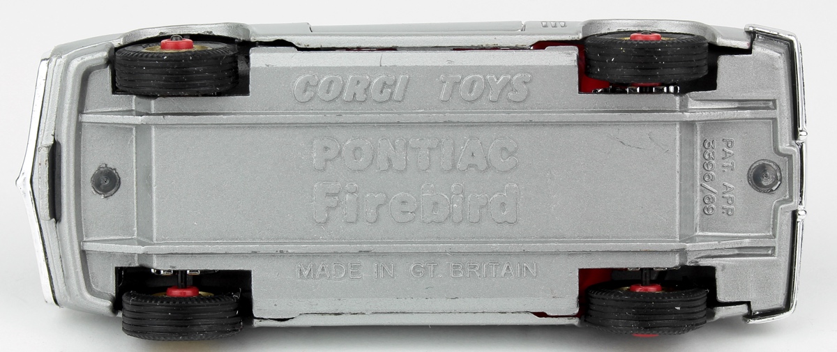 Corgi 343 Pontiac Firebird. Very, very near mint/boxed. *Red Spot wheels version* with ALL-WHITE inner. Scarce! From The Berlin Collection.