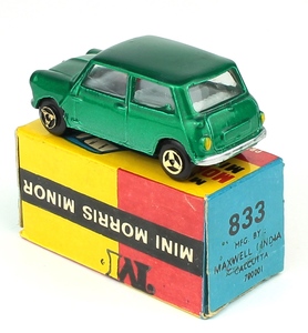 Maxwell/Milton 833 Morris Mini Minor ( Calcutta company using the casting for Corgi 226 model). Vibrant emerald green issue. Very near mint/boxed. So scarce! From The Queensland Collection. Starting bid £600. Please note that QDT apply 12.5% buyer's commission.