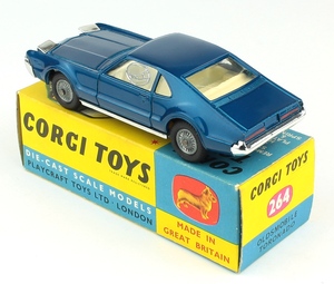 Corgi 264 Oldsmobile Toronado. Very near mint/boxed. Mid metallic green-blue issue. With detailed cast wheels. From The David Frank Collection.