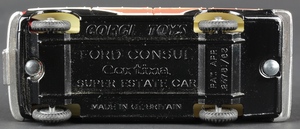 The production version of Corgi 491 Ford Consul Super Estate Car would be finished in a range of colours, all with the brown and cream side panels, but with a single colour body finish of red, graphite grey or blue. This colour trial in red a has a black lower half and base. Corgi opted for the ‘simpler’ version of one main body colour for the production model, so this is a unique find.