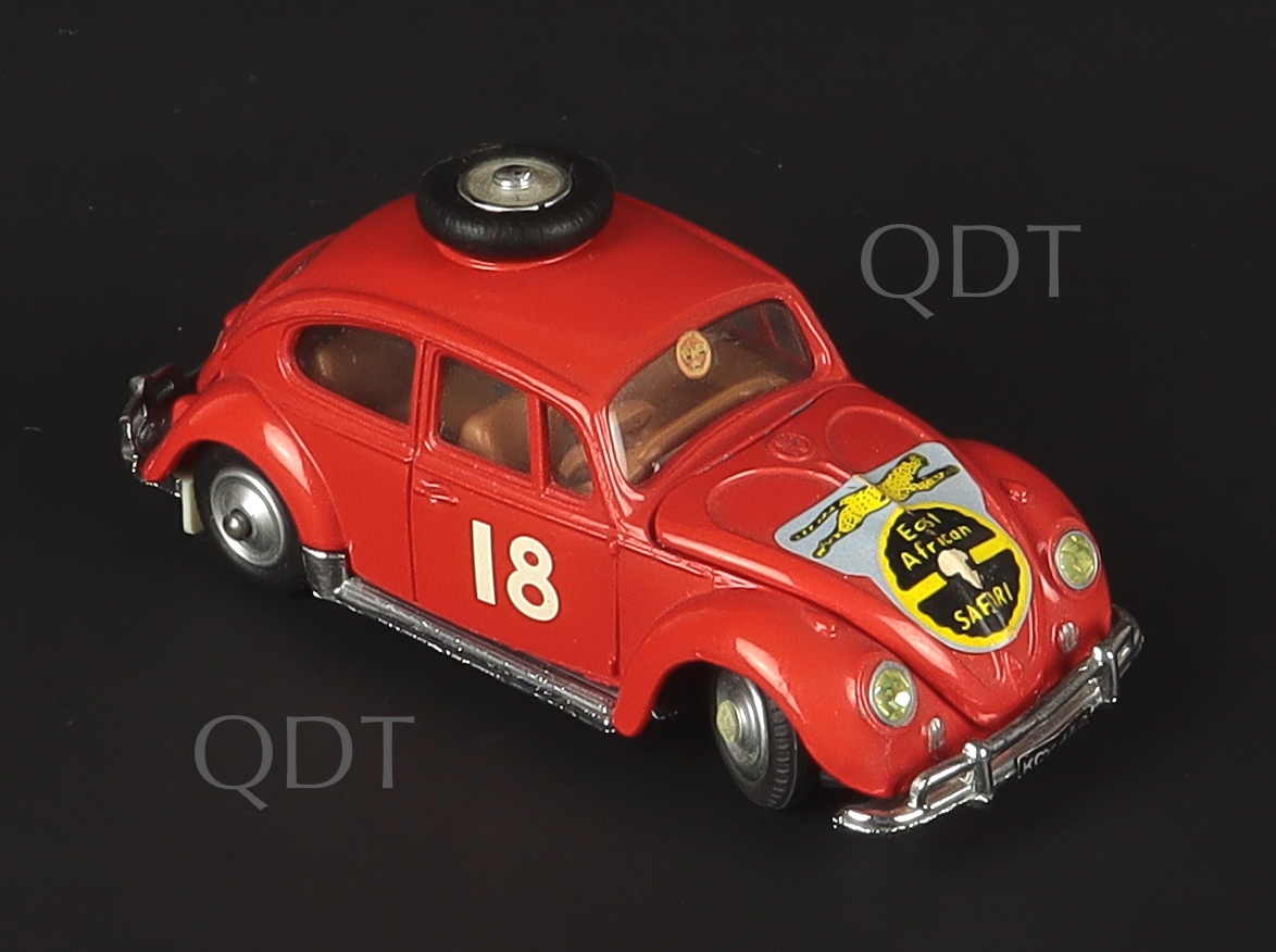 A very popular Corgi model – this right-hand drive version is in close to mint condition, with a fine and gleaming scarlet paint finish. Notably complete and fresh detailed bonnet label, complete door numbers and “Nairobi” label. Unmarked chrome bumpers, wheels, baseplate, and sparkling jewelled headlights. Rhino.