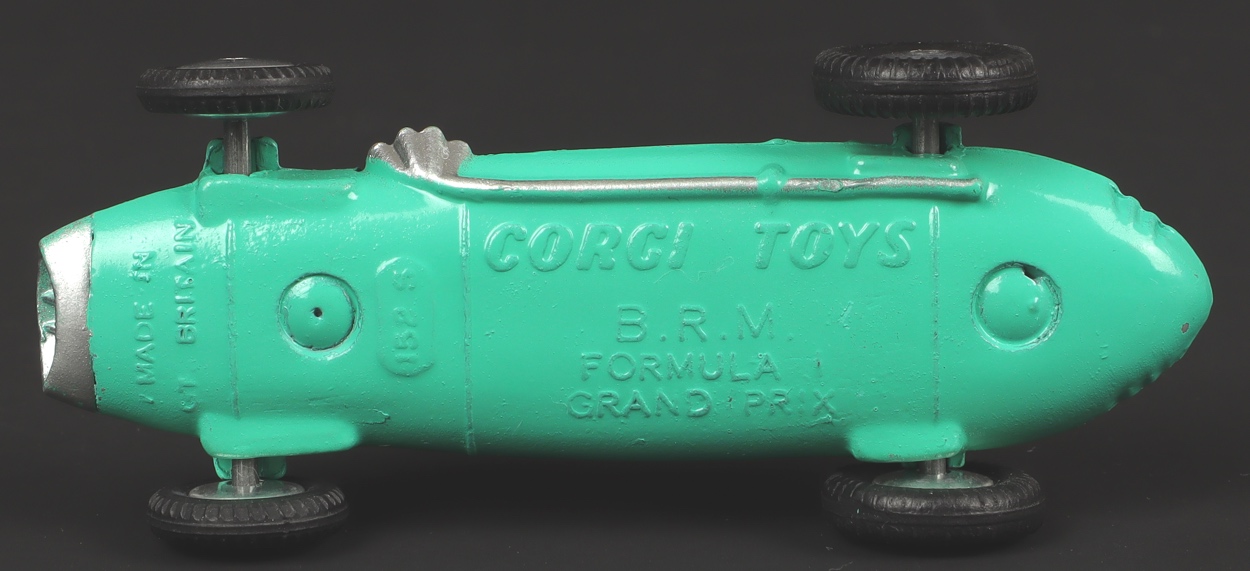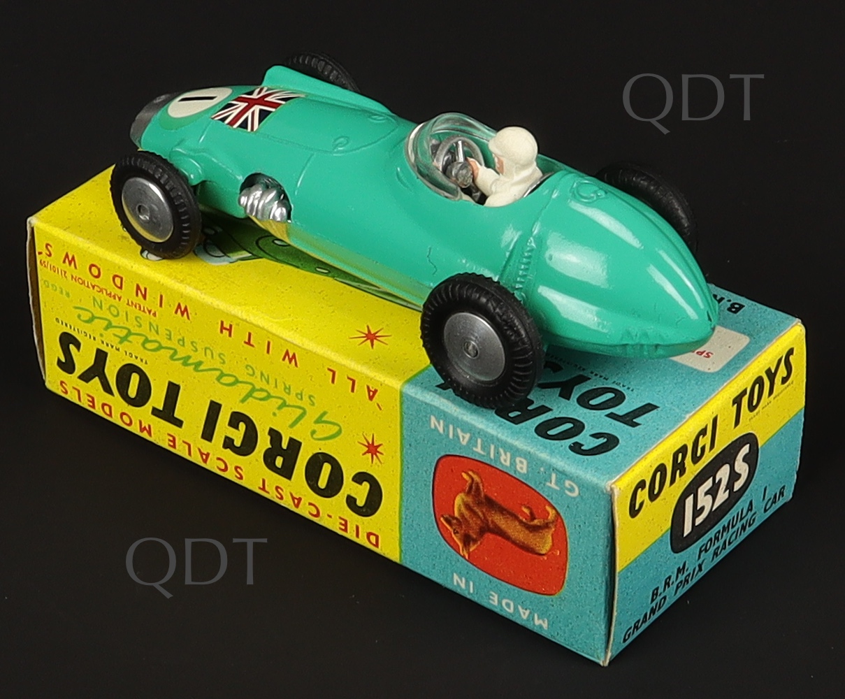 BRM Formula 1 Racing Car, by Corgi Toys, No. 152S. Very near mint/boxed. With Printed Note from Corgi & unapplied wheel trims. From The West Midlands Collection.