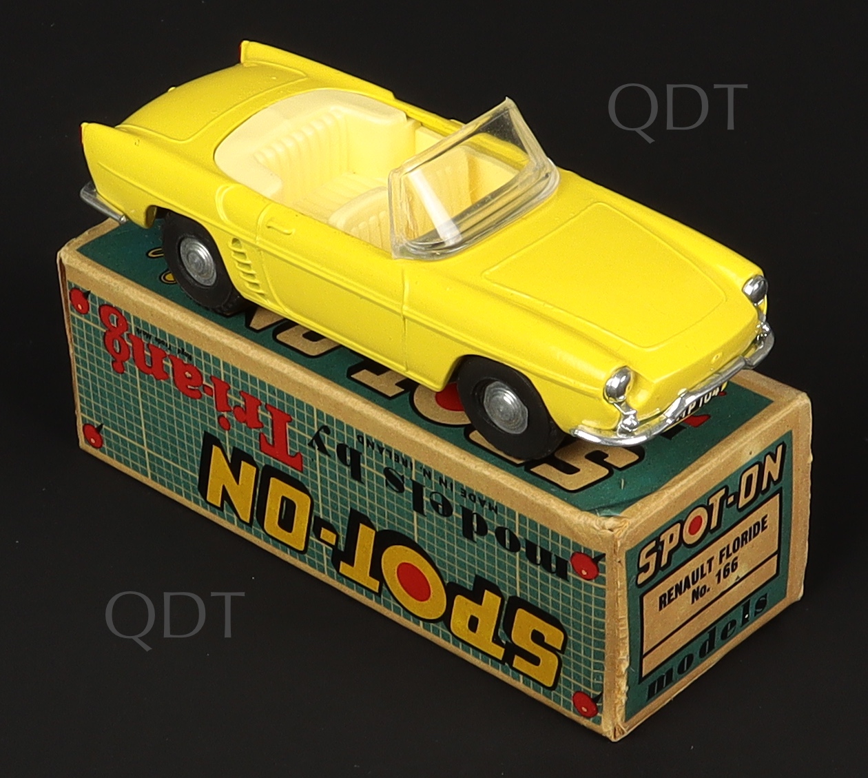 Renault Floride by Spot-on Models, No. 166. Scarce in YELLOW, LEMON interior. Very, very near mint/boxed, with Collector's Card & Leaflet. Another First for QDT. From A Phenomenal Collection. Starting bid £250. Please note that QDT apply 12.5% buyer's commission.