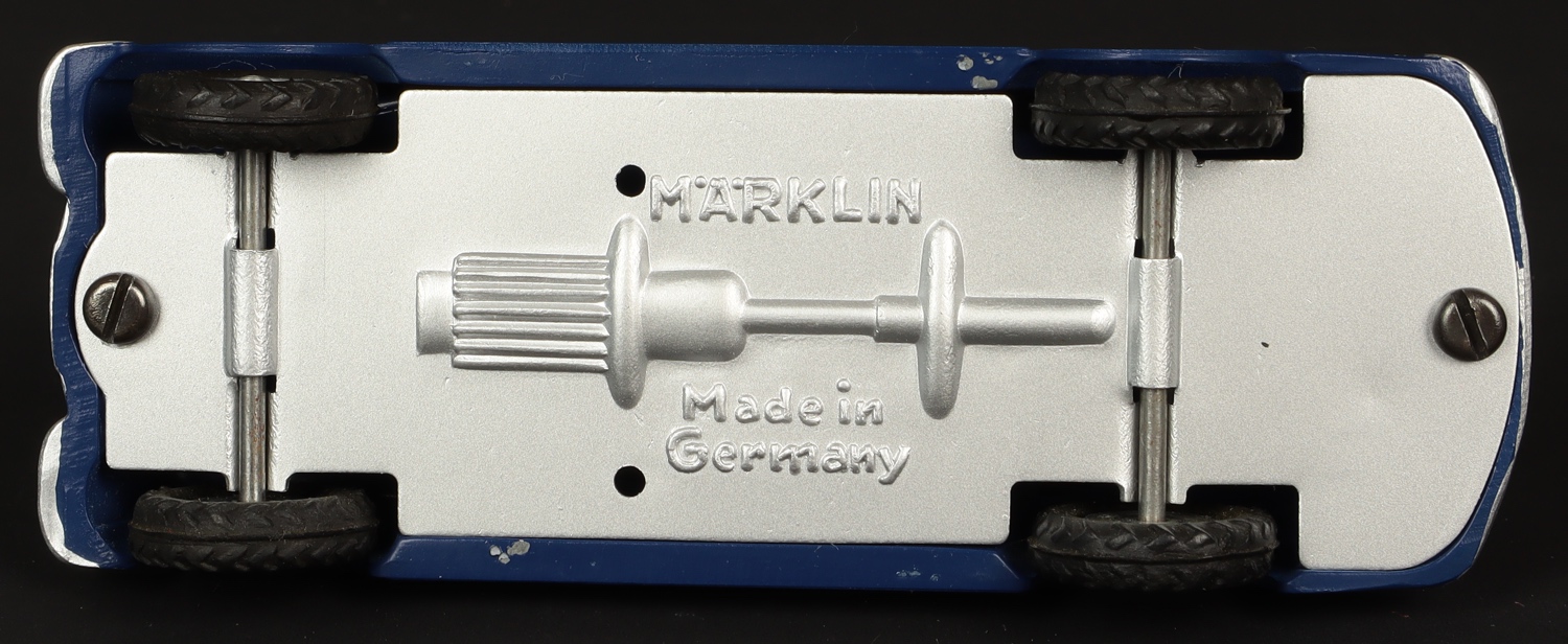 From the highly-regarded German manufacturer Marklin, comes this handsome Mercedes 300 in a rich deep blue, with shiny shaped spun wheels. Well-shaped original tyres. Shiny silver details. Untarnished base.