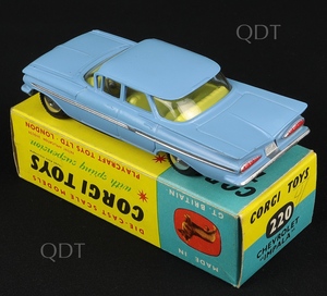 Chevrolet Impala by Corgi Toys, No. 220. Very near mint/boxed. POWDER blue issue with lemon interior, flat spun wheels from The Berlin Collection.
