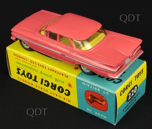 Chevrolet Impala by Corgi Toys, No. 220. Salmon pink issue with FLAT SPUN wheels. Very near mint/boxed From The Berlin Collection.
