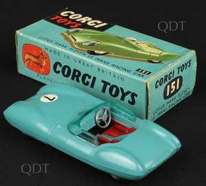 Lotus Mark Eleven Le Mans Racing Car by Corgi Toys, No. 151. Very near mint/boxed. Duck Egg Blue issue. Blue-tinted screens & Racing No.7. From The Berlin Collection.