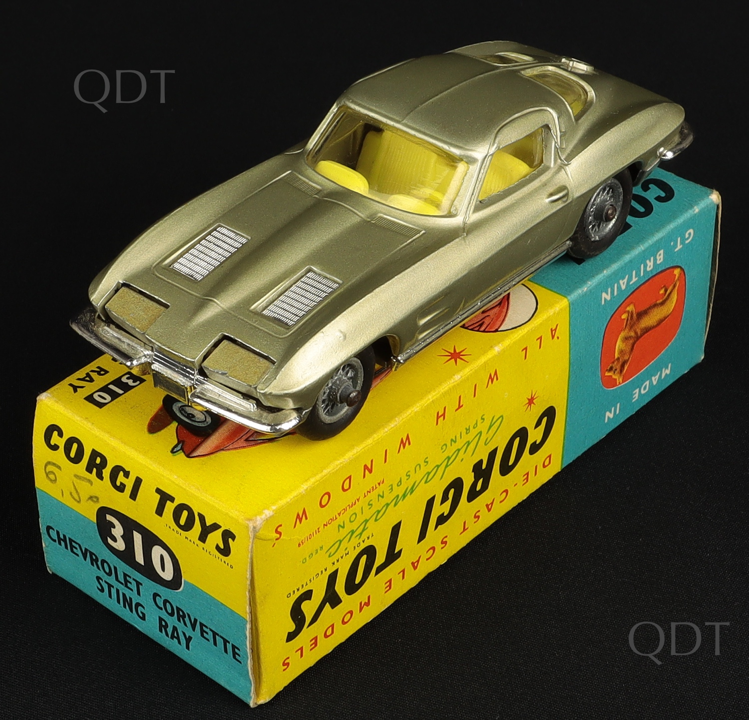 Chevrolet Corvette Sting Ray by Corgi Toys, No. 310. Very, very near mint/boxed. Scarce CHAMPAGNE SILVER version with spoked wheels.. From The Berlin Collection.