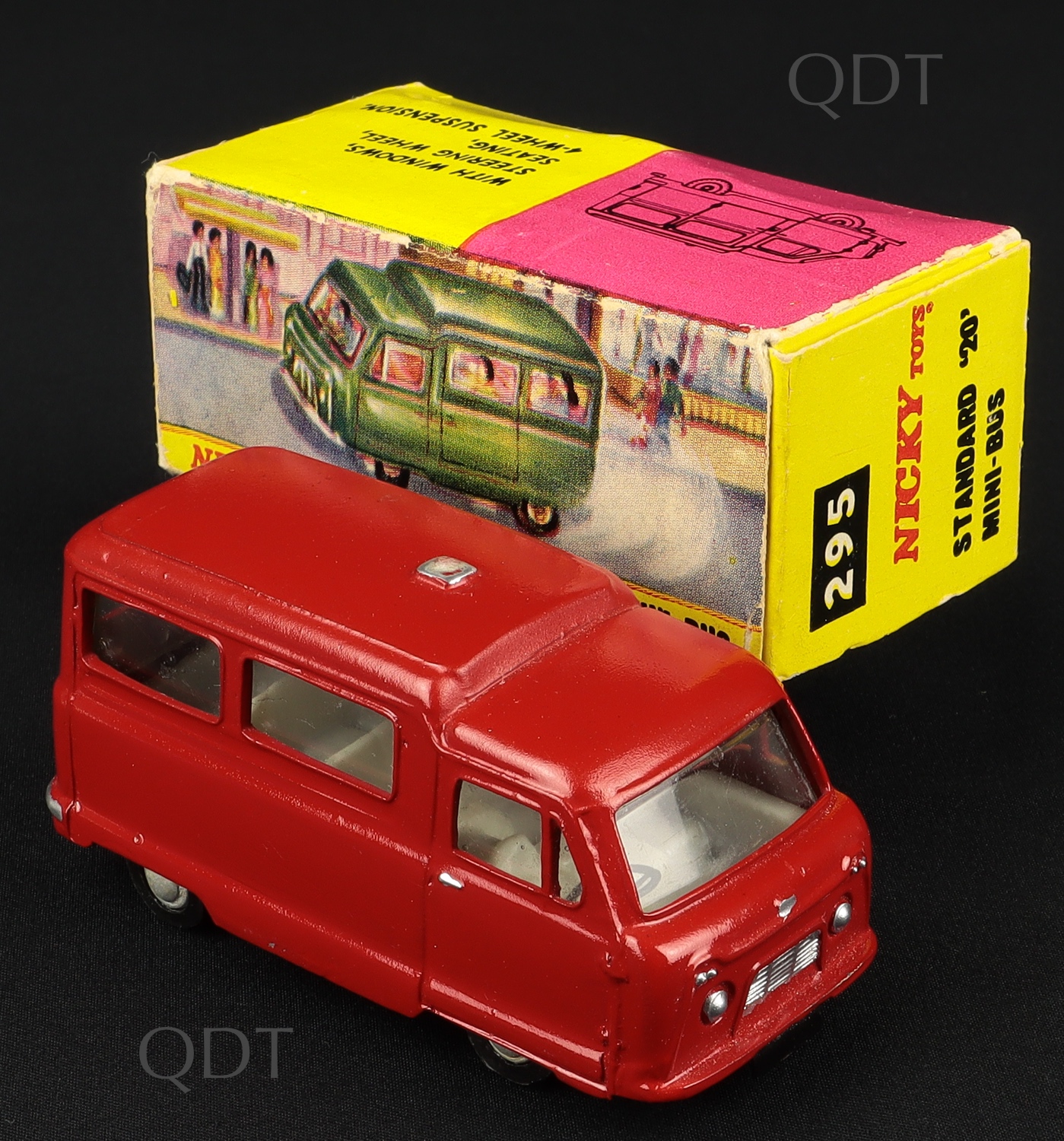 Standard 20 Mini Bus by Nicky (Dinky) Toys, No. 295. Vivid red issue. Very near mint/boxed. From The Berlin Collection. Starting bid £200. Please note that QDT apply 12.5% buyer's commission.