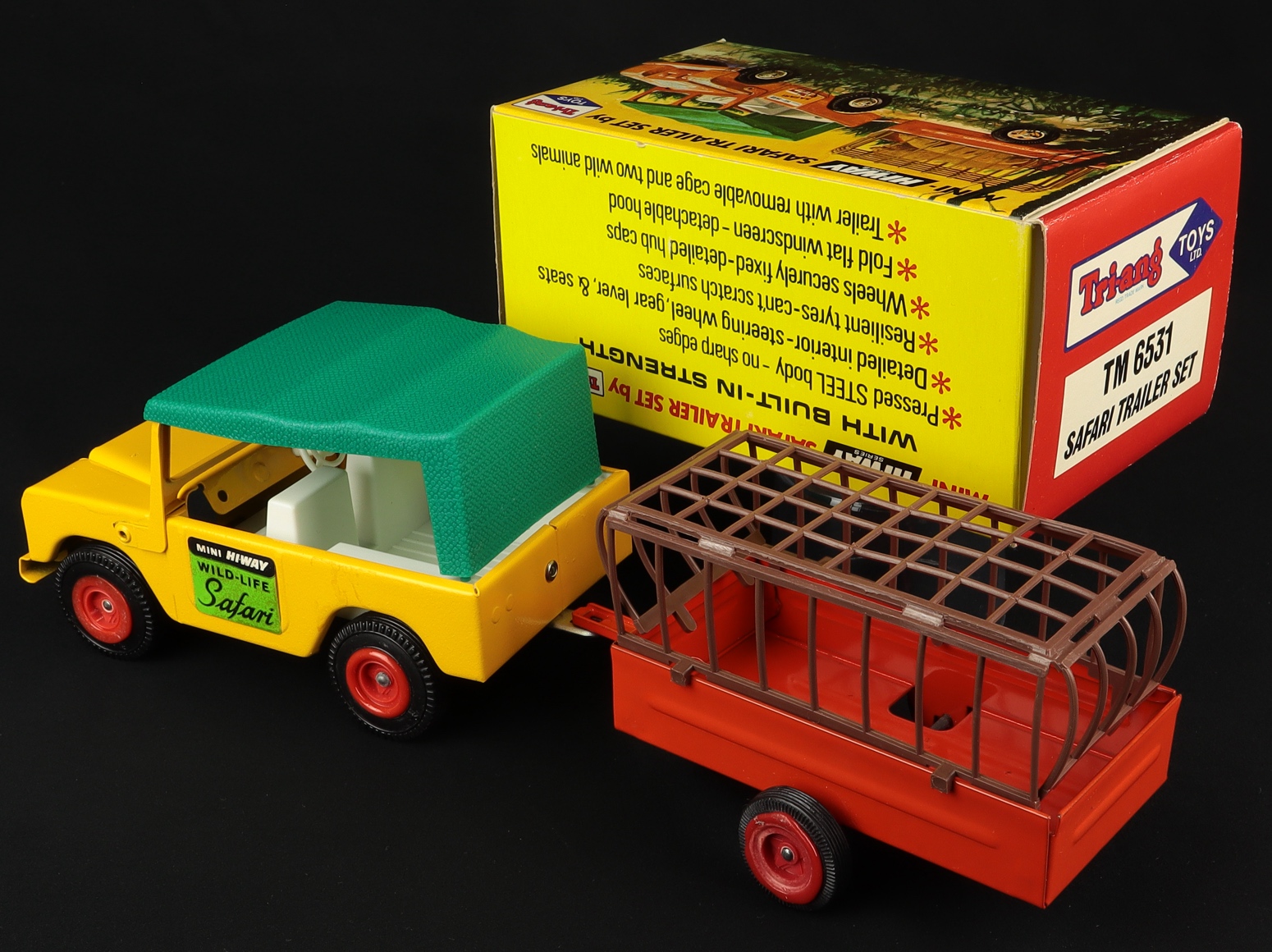 Hi-Way Safari Trailer Set by Tri-ang Models, No. 6531. Very near mint/boxed, with card packing. A scarce set from The Hastings Collection.