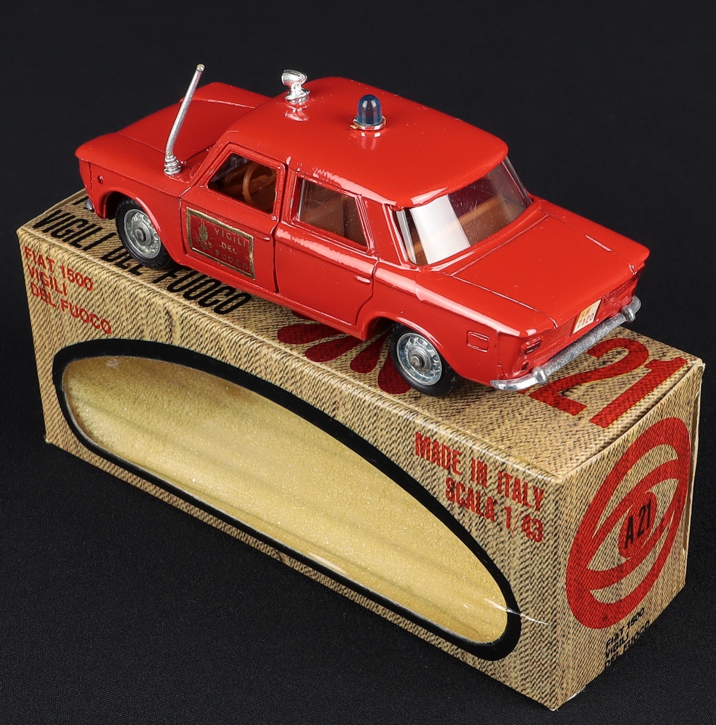 Gran Toros Fiat 128 'VIGIL DEL FUOCO' by Mebetoys Models, No. A21. Bright red with tan interior & complete labels. Near mint plus/boxed. From The Berlin Collection.
