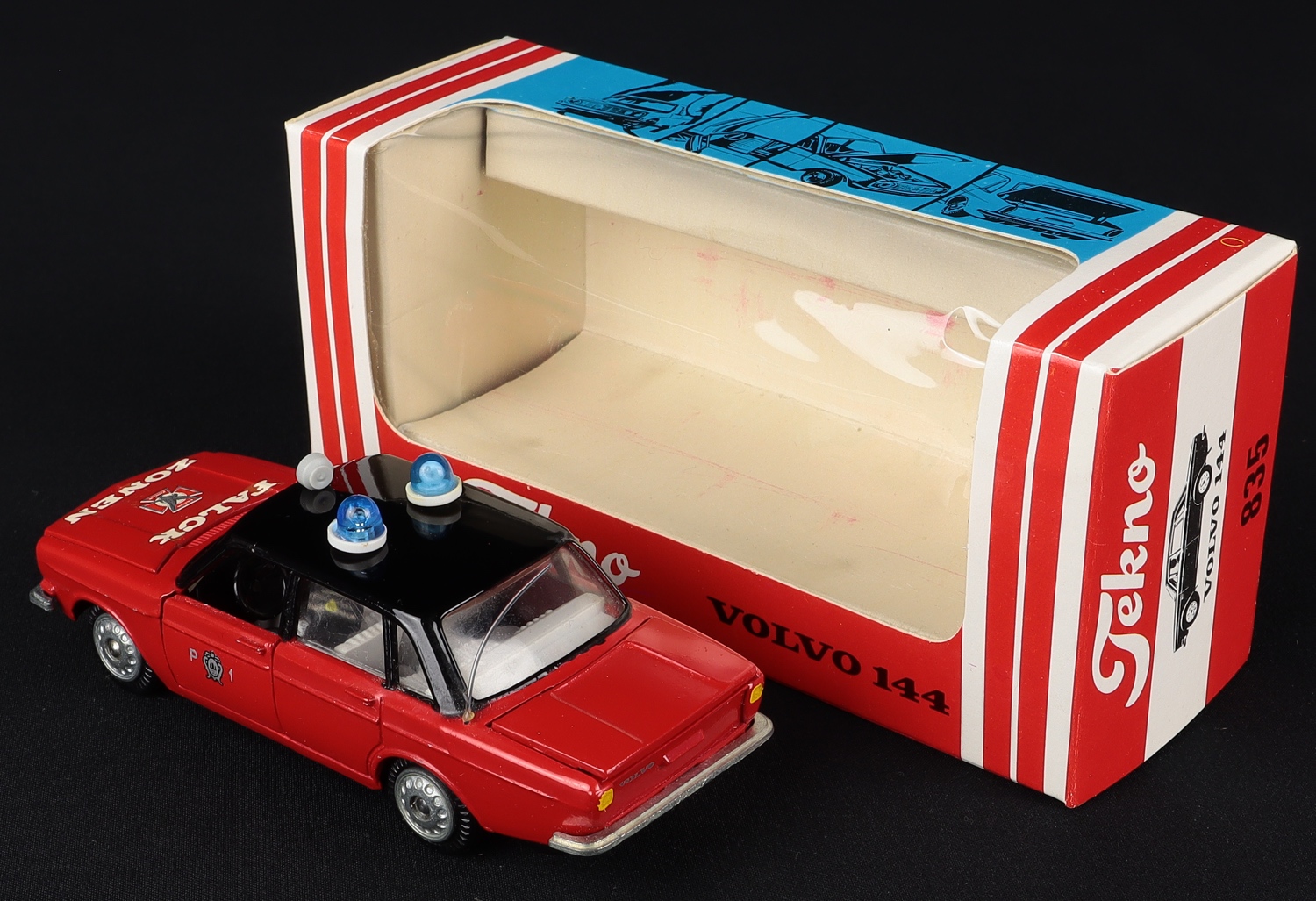 Volvo 144 'FIRE' FALCK ZONEN by Tekno Models, No. 835. issue. Scarce. Very near mint/boxed. Pristine outer box! From The Berlin Collection.