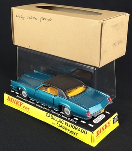 Cadillac Eldorado by Dinky Toys, No. 175. Metallic blue version - a more difficult find. Very near mint/boxed, with card over-sleeve From The Berlin Collection.