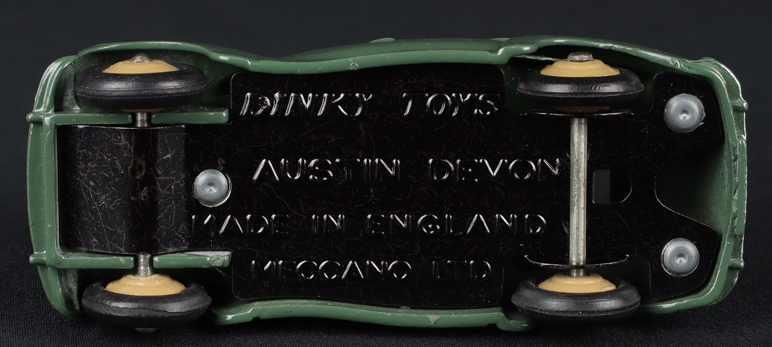 Austin Devon Saloon by Dinky Toys, No. 152. Very near mint/unboxed. Scarce issue in sage or mid grey-green (darker than suede green) with fawn wheels. From The Rochdale Collection.