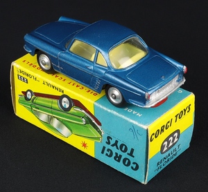 Renault Floride by Corgi Toys, No. 222. Scarce in MID-METALLIC BLUE with lemon interior & shaped spun wheels. Near mint plus/boxed.