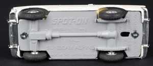Issued during 1963 by the respected Spot-on manufacturer in strictly 1:42 scale. This Sunbeam Alpine Convertible model is finished in glacier white with a deep cream interior, including the steering wheel. Shiny spun wheels, and well-shaped original tyres.