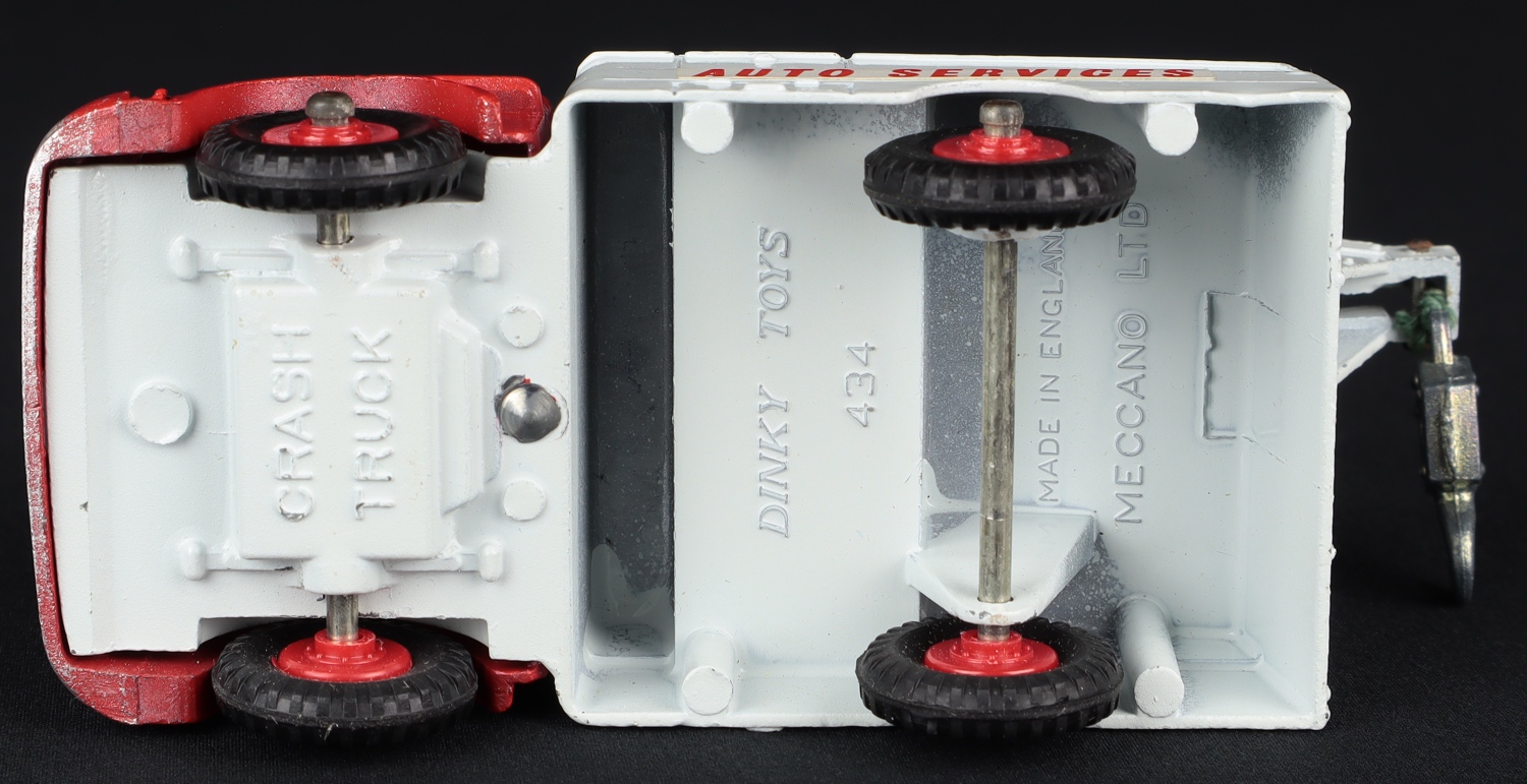Bedford T.K. Crash Truck 'Auto Services' by Dinky Toys, No. 434. Non-metallic red and black roof, red operating wheel, white steering wheel. Very near mint/boxed. From The QDT Vault.