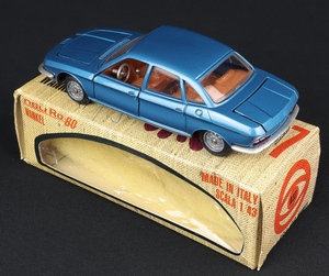 From the Italian manufacturer Mebetoys (who produced high quality models with a wealth of detail during 1960’s and 70’s), this NSU Ro80 model presents well with a pleasing bright metallic blue glossy finish, deep tan interior. Detailed cast wheels and as-new tyres. Suspension.