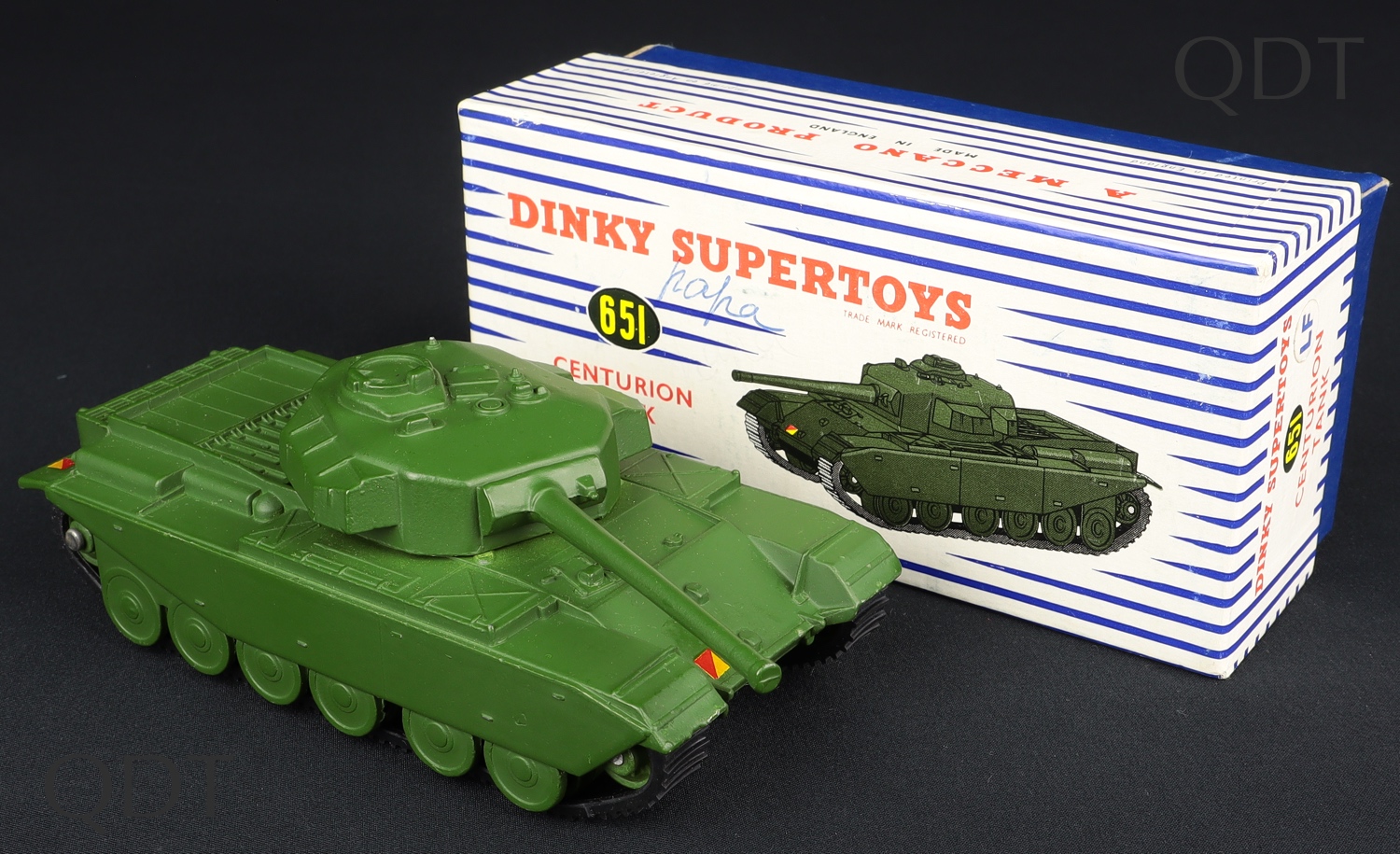 Centurion Tank by Dinky Supertoys, No. 651. Matte military green. 'DINKY SUPERTOYS' PRINTED ON BOX. Very near mint/boxed, with card packing. From The Berlin Collection.
