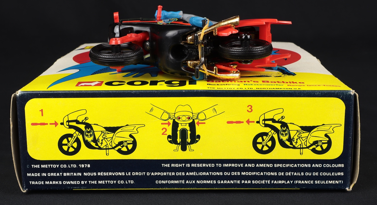 Batman's Batbike by Corgi Models, No. 268. Mint/boxed. From a specialist tv and film Collection. QDT starting bid £250. Please note that QDT apply 12.5% buyer's commission.