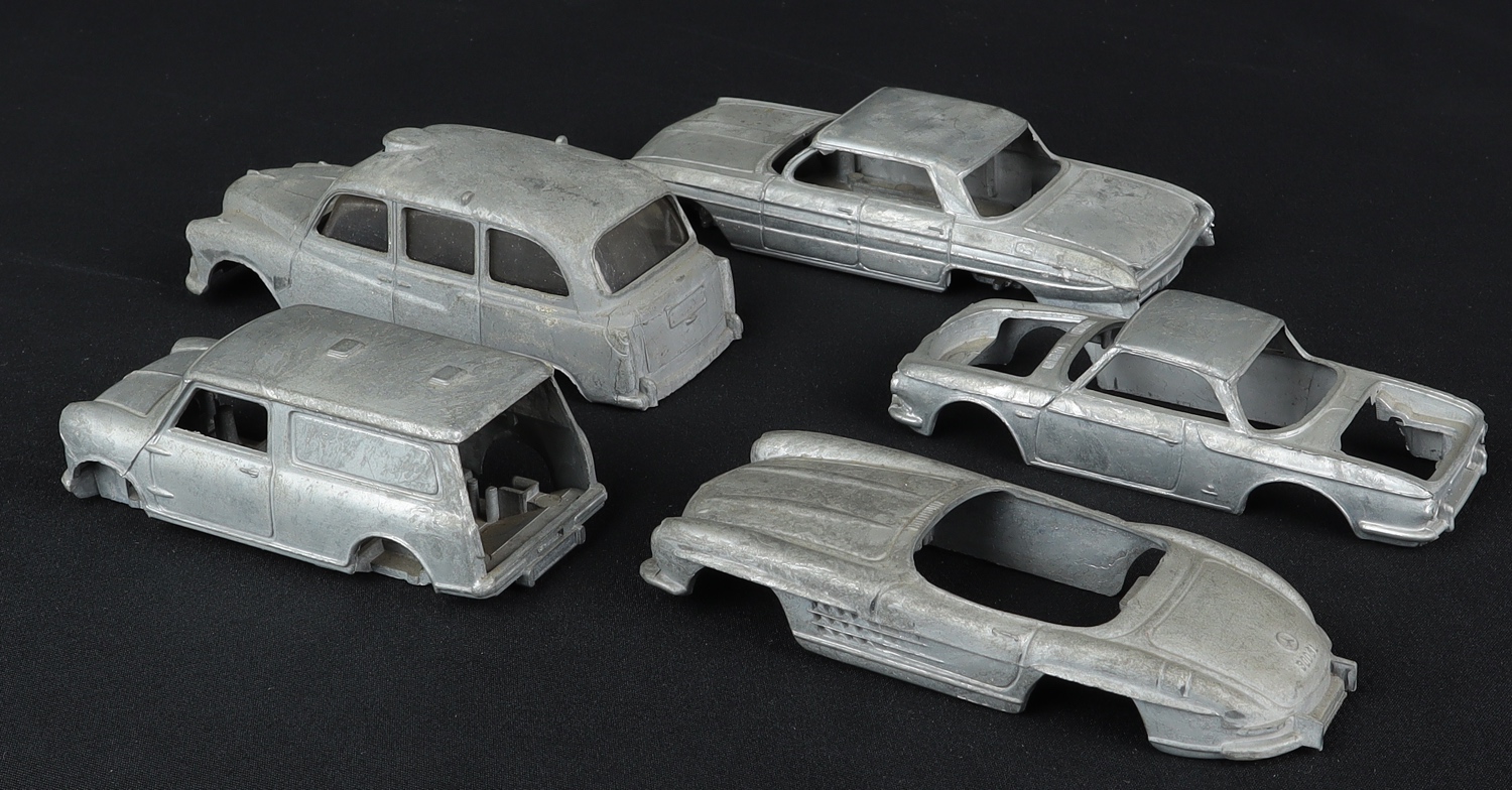 Remarkable and intriguing, these bare Corgi castings will be familiar to Corgi enthusiasts even in this unpainted and unfinished condition.