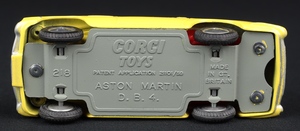 Aston Martin D.B.4 Corgi Toys, No. 218. Very near mint/boxed. Yellow version with flat spun wheels. Open vent. From The Coastline Collection.