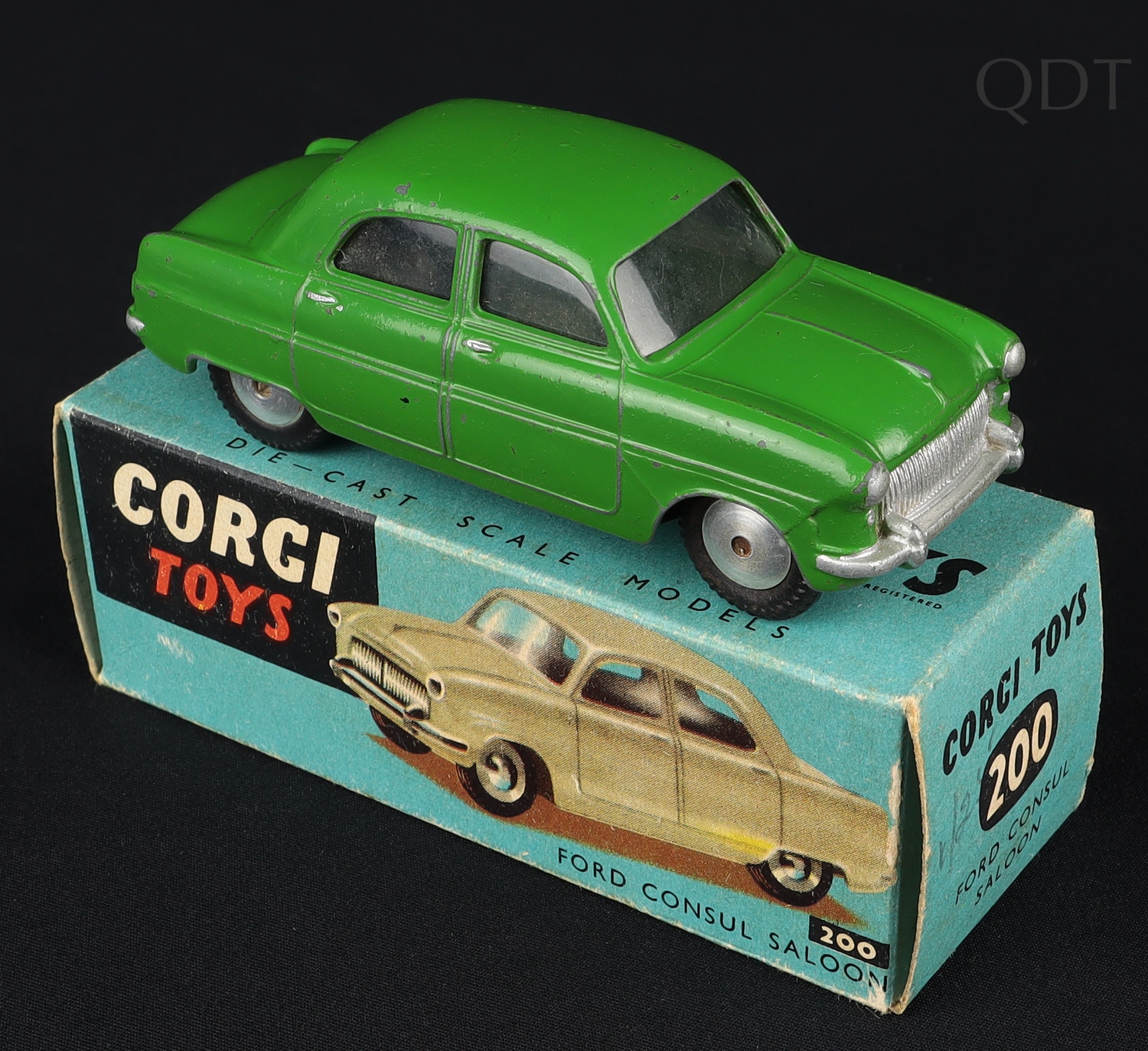 Ford Consul by Corgi Toys, No. 200. Excellent plus/boxed. BRIGHT GREEN issue. 2nd we have ever offered for sale! From The Gower Collection.