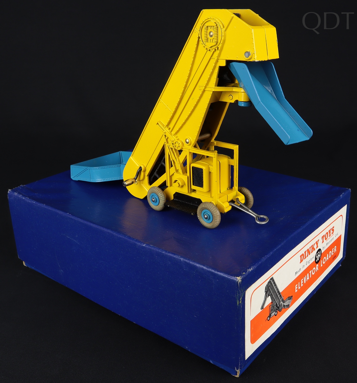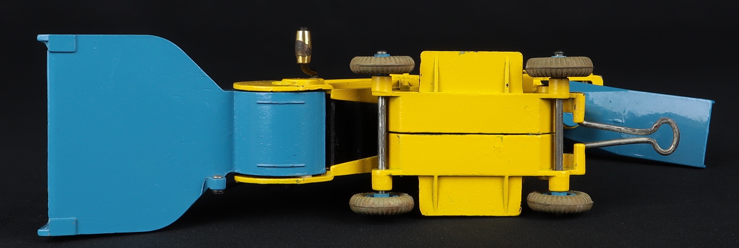 Elevator Loader by Dinky Toys, No. 564. Early issue. Yellow & blue with blue metal wheels, black step-plate, gold coloured rivets & brass winding handle cuff. Near mint plus/boxed. Includes layers of original packing. Rarest box version . From The Two Brothers Collection - a small childhood collection from the mid-1950's.