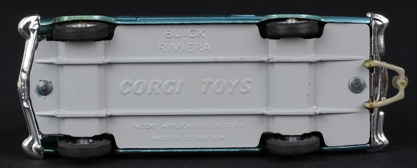Buick Riviera by Corgi Toys, No. 245. DEEP STEEL BLUE issue with SPOKED wheels. Very, very near mint/boxed, with Trans-O-Lite Leaflet. From The Berlin Collection.