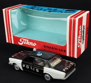 Volvo 144 'POLIS' by Tekno Models, No. 835. Black & white SWEDISH version. Near mint plus/boxed. From The Berlin Collection.