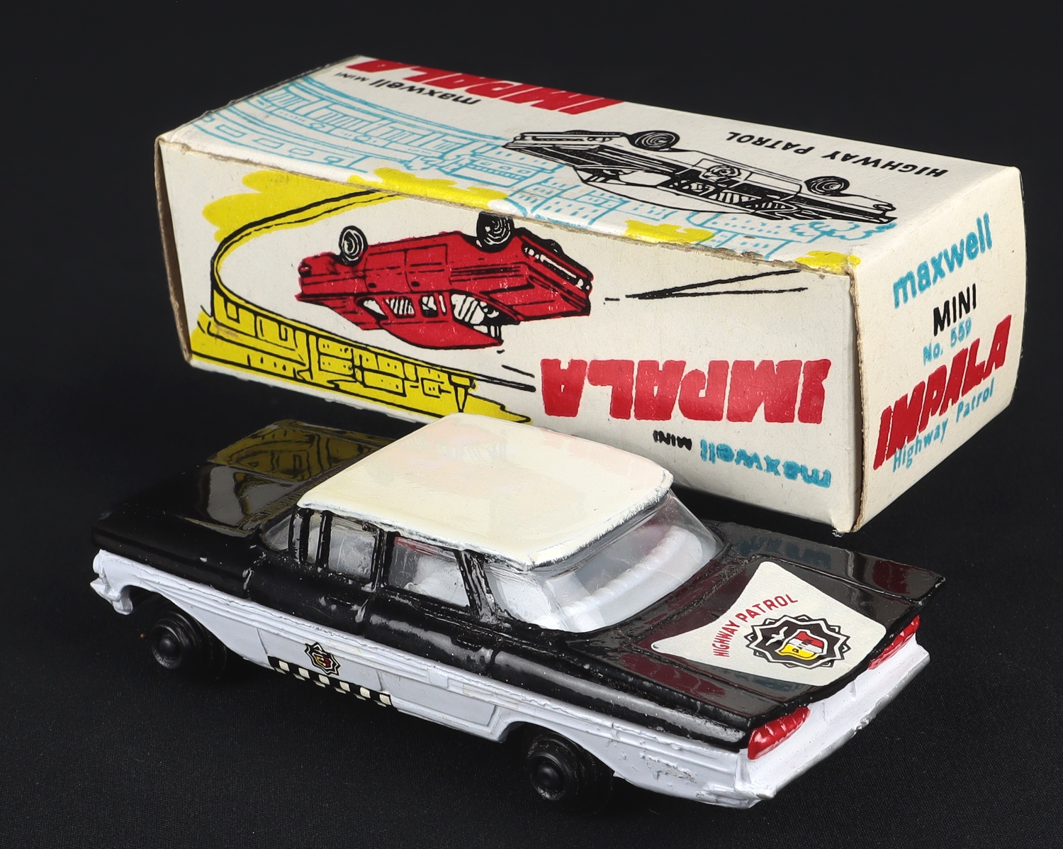 Chevrolet Impala 'HIGHWAY PATROL' by Maxwell Models (Calcutta, India company), No. 559. Very near mint/boxed. So scarce! From The Hastings Collection.
