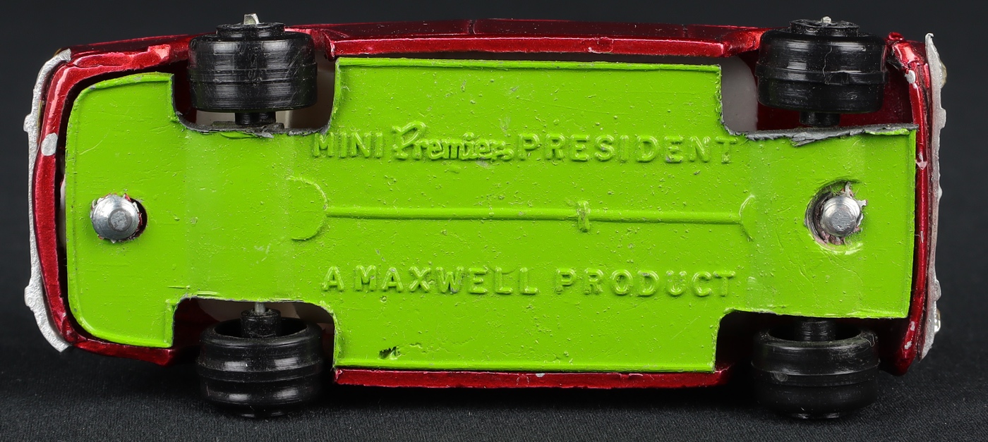 The first we have ever offered for sale, this is a rare *Maxwell (Milton) model. It has a rich deep metallic red finish, off-white interior, and one-piece wheel & tyre construction. Silver trim, window glazing. Complete racing strip.