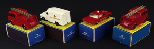 3) 59 Fire Chief’s Car, in vibrant red with white roof light and complete ‘Fire Chief’ labels. Black knobbly tyres. Complete and bright box has light wear and a tiny tear.
