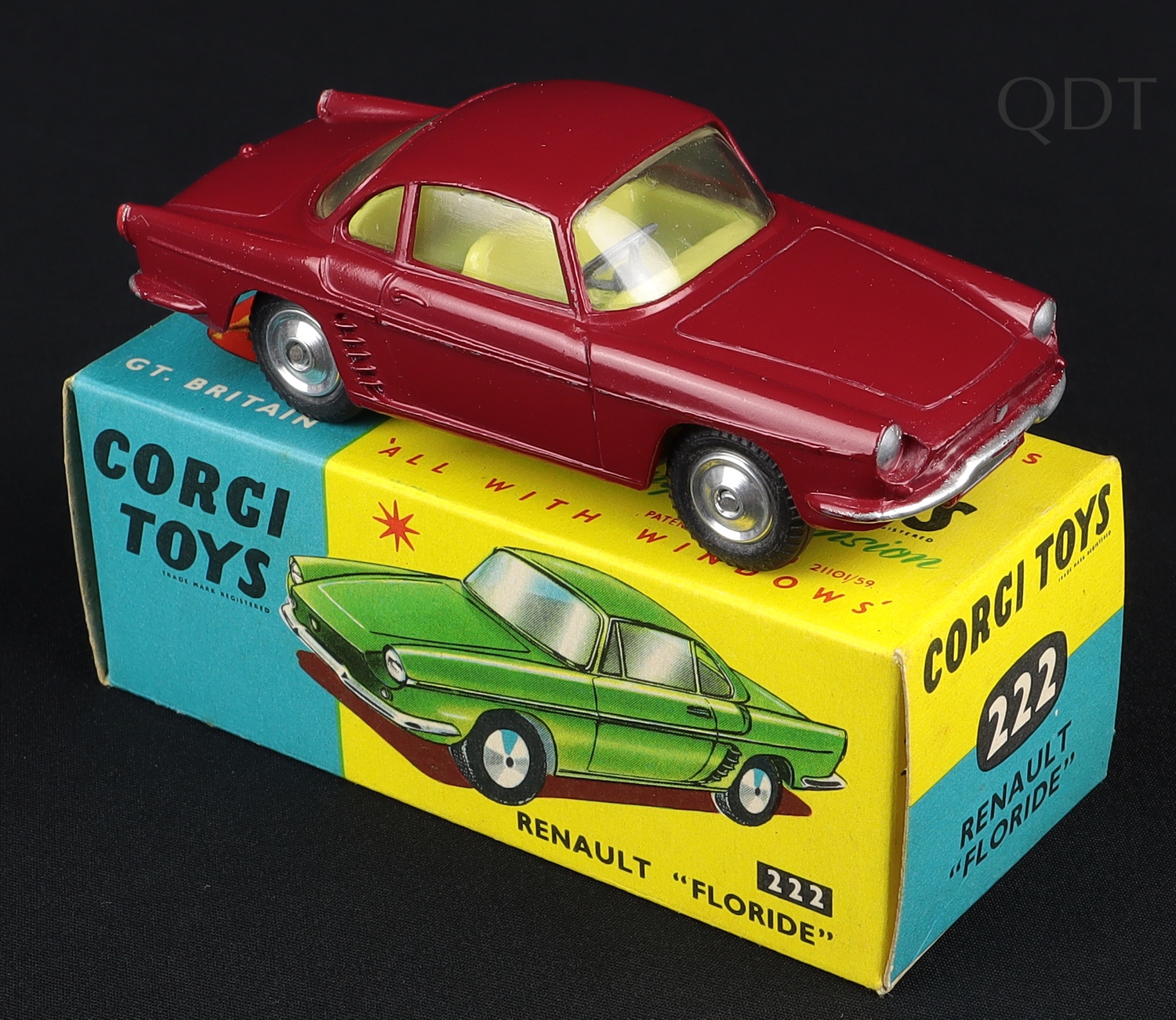 Renault Floride by Corgi Toys, No. 222 . Red-brown version. Shaped spun wheels. Very near mint/boxed. Really fresh box! Scarce version from The 25 Year Collection in California.