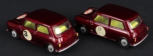 It comprises 2 x Corgi 226 Morris Mini Minor in maroon with intact Monte Carlo labels and Fernel racing Number labels on the doors. Adapted for this game, so each model has the requisite hole in the base. Both have cast wheels.In very close to mint condition.