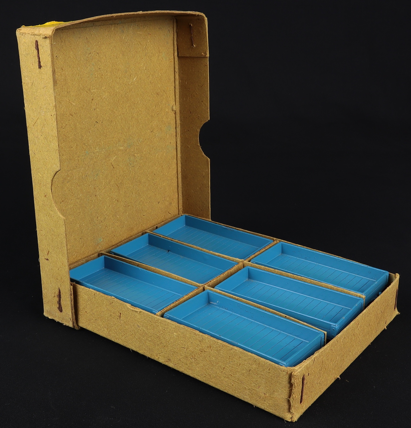 6 x Garden Trucks in original Trade Box, Dinky Toys No. 105C. Very near mint. With original card dividers. Scarce old shop stock item from an Eclectic Collection.