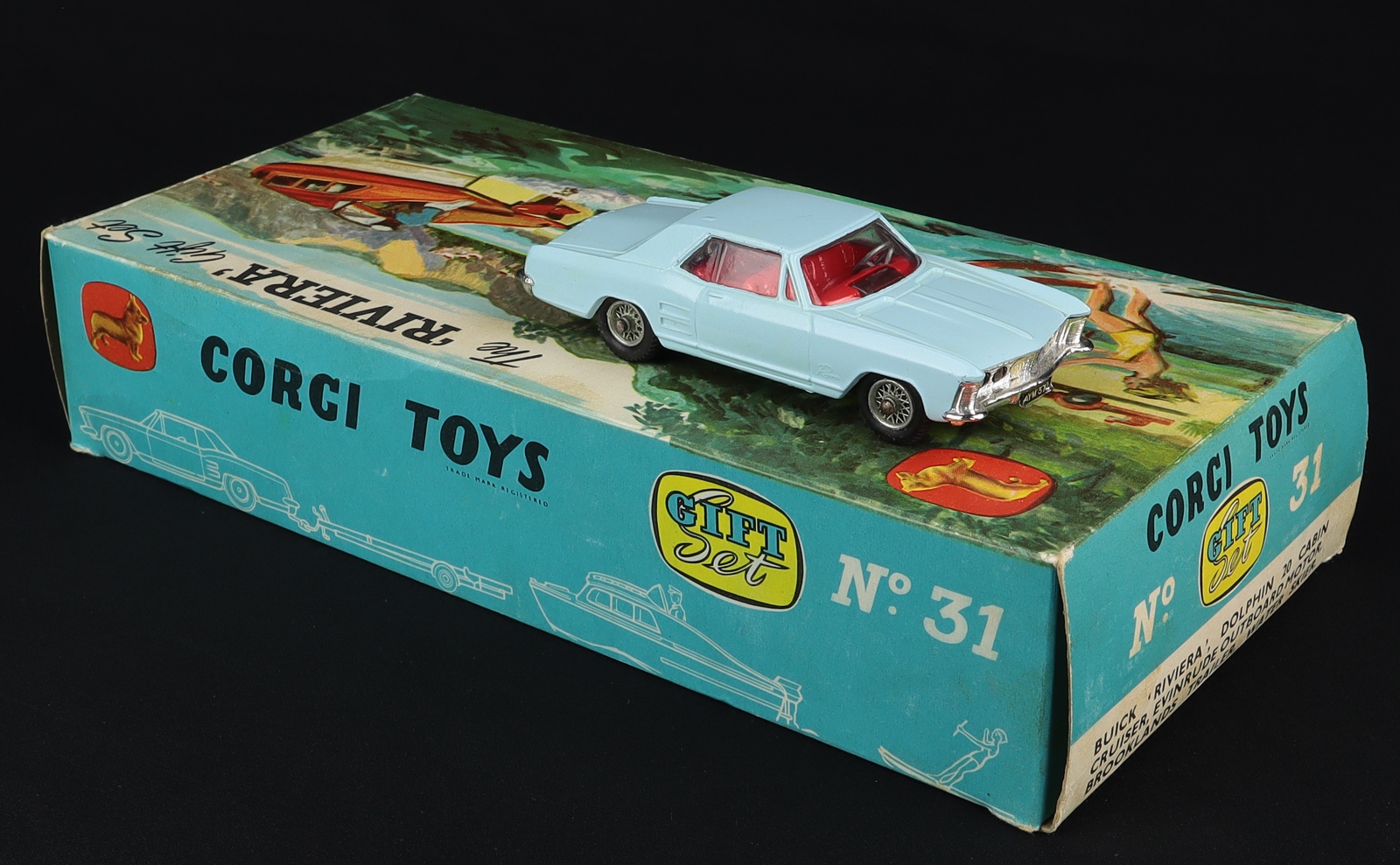 The 'Riviera' Gift Set by Corgi Toys, Gift Set No. 31. Very near mint/boxed. 1st issue version with the light blue Riviera. From The Ian Hewlett Collection.