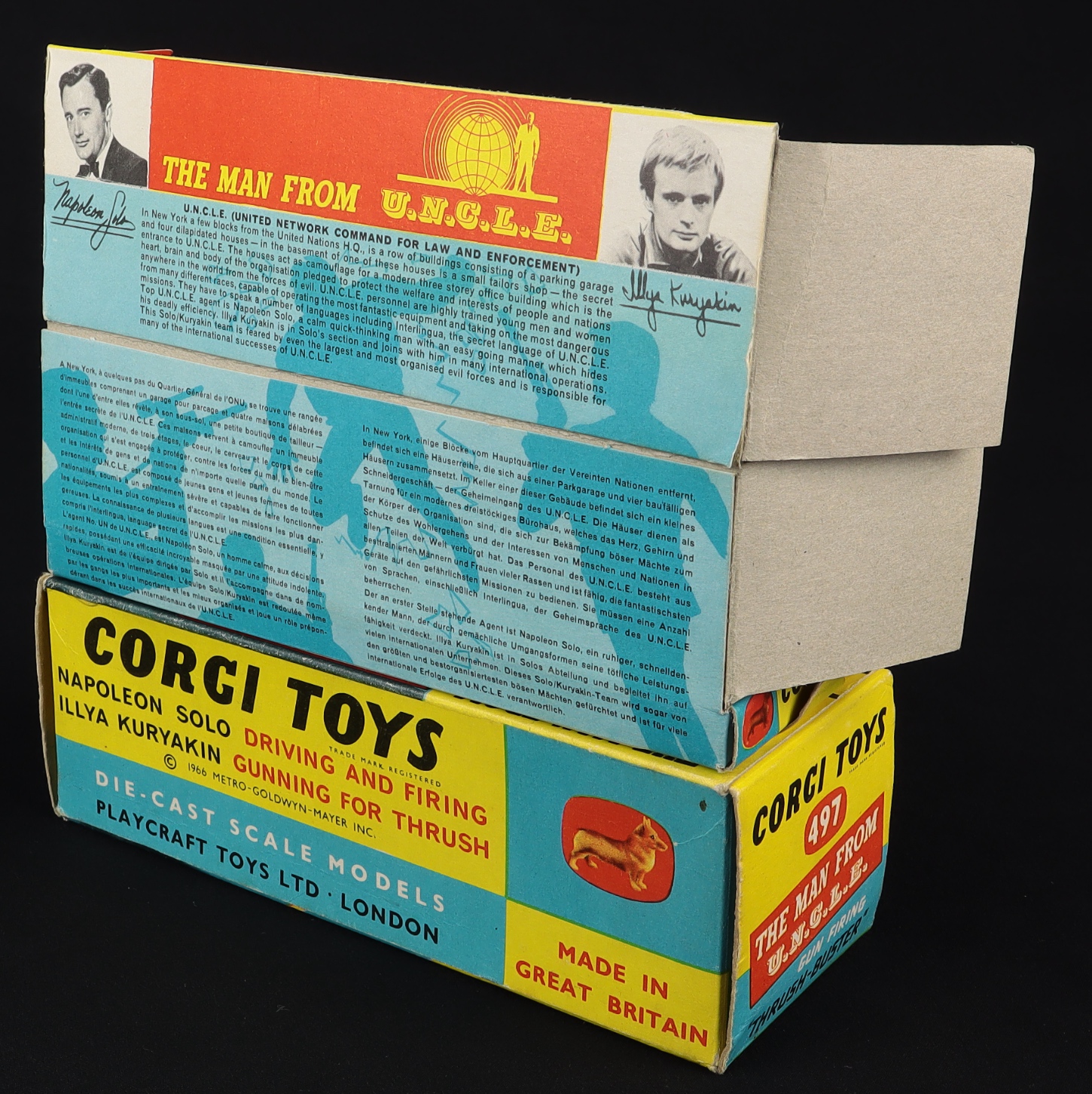 Lots of info about the U.N.C.L.E organisation on box reverse as well as pictures and signatures of the T.V. series protagonists.