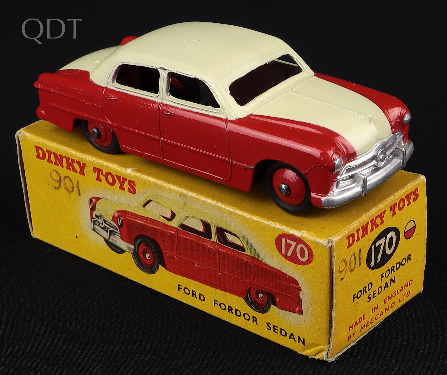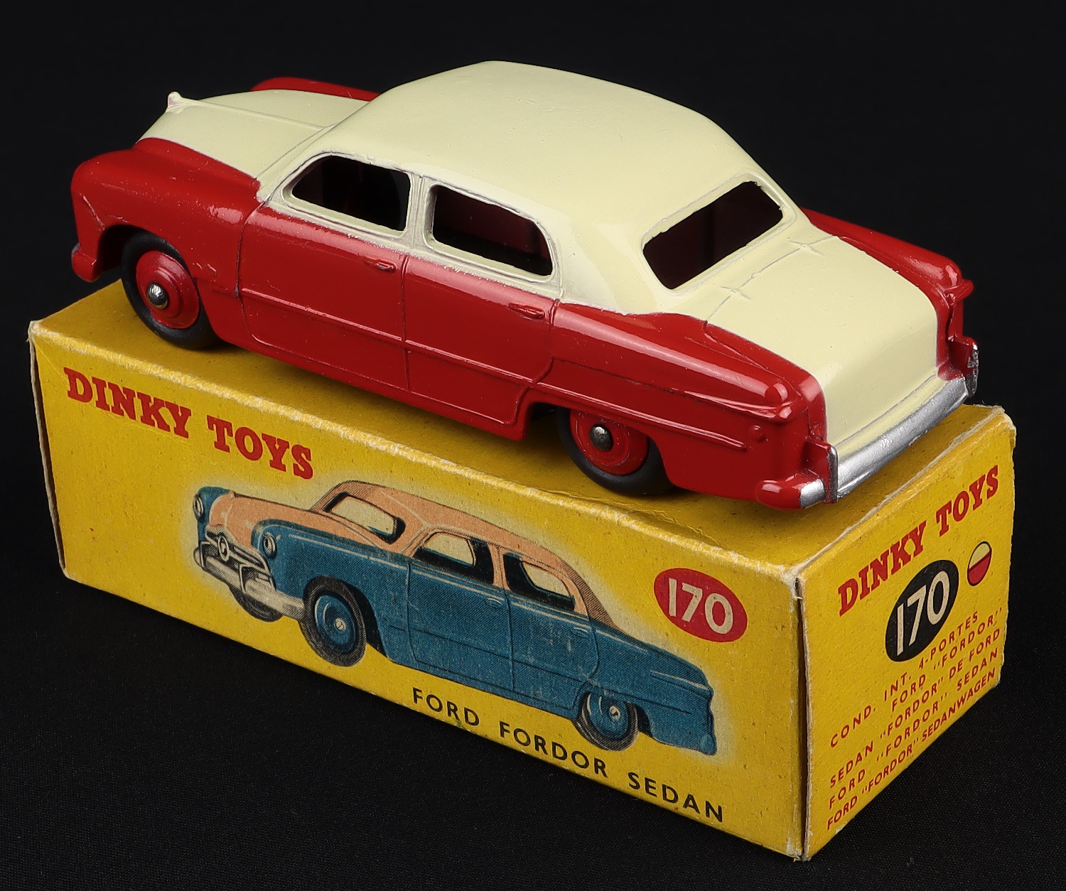 Ford Sedan by Dinky Toys, No. 170. Red and cream high line issue. Scarce. Very near mint/boxed. From The Anglo-French Collection.